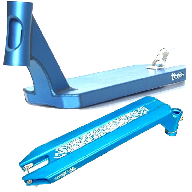 Le deck signature Angus Hughes de la marque Apex est un deck de haute performance pour trottinette freestyle, il est fait en Aluminium 6061-T6 léger et durable. Si le skatepark est votre maison, et que les whips et autres tricks n'ont pas de secret pour vous, alors ce deck peg-cut est pour vous. Sa forme accueillera parfaitement vos pegs pour des grinds infinis. Ce deck Apex est compatible avec des roues de 110mm.